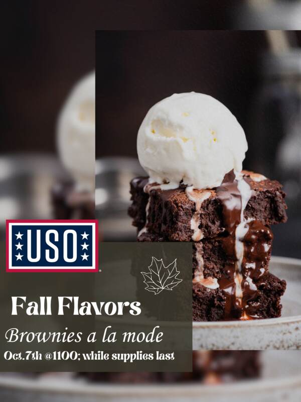 Happy Fall! Join USO Schwab for a delicious fall treat once a month from September 1st through November 30th. On October 7th come and enjoy a warm brownie topped with vanilla ice cream!