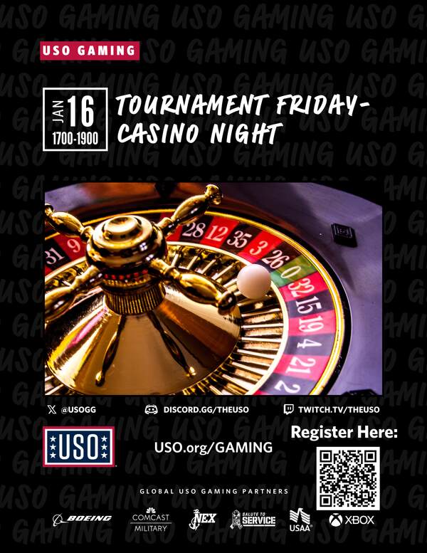 Join us for an exciting evening of fun, food, and friendly competition at USO Schwab’s Casino Night! Try your luck at classic casino games like blackjack, poker, and roulette — no real money involved, just great prizes and good times. Enjoy music, snacks, and a lively atmosphere as we bring Vegas vibes to Schwab for one unforgettable night. Registration is required.