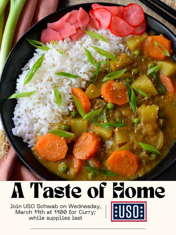 USO Schwab is bringing you A Taste of Home every Wednesday! Visit each Wednesday starting at 1100 for a delicious homecooked lunch, while supplies last.