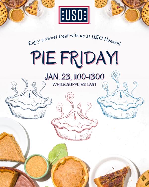 Come grab a slice of pie from USO Hansen on January 23rd while supplies last!