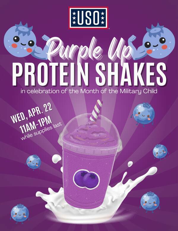 Celebrate the month of the military child with us this April! Join us on April 22nd for a special event dedicated to raising awareness and honoring these incredible children. On “Purple Up” day, we’ll be serving delicious purple protein shakes at our center, symbolizing support and recognition for military families. Join us in showing appreciation for the military children who courageously stand alongside their families.