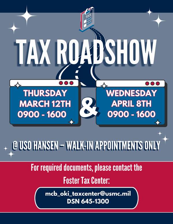 Camp Foster Tax Center will be operating out of USO Hansen on March 12 from 0900-1600 to offer their services in assisting Marines during the 2026 tax season.