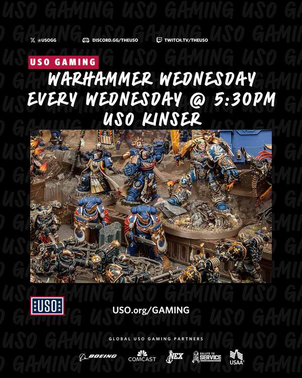 ⚔️ Warhammer Wednesdays are here!🎲 Come join us on Wednesday, April 1st @5:30PM at USO Kinser for an epic night of strategy and tabletop fun. Whether you’re a pro or just curious, we’d love to have you!
